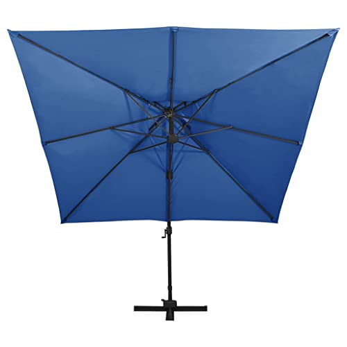 Home & Garden – Freischwinger-Regenschirm mit doppeltem Oberteil, 300 x 300 cm, Azurblau, Rasen & Garten – Dieser Freischwingerschirm ist perfekt, um Schatten zu bearbeiten und Sie vor den schädlichen UV-Strahlen der Sonne zu schützen. Aufgebraucht UV-Abschirmung- und lichtechtem Polyester gefertigt, bietet Ihnen die Sonnenschirmhülle optimalen Abschirmung vor der Sonne und ist leicht zu reinigen. Es verfügt über einen stabilen Kreuzsockel für mehr Stabilität. Das exklusive Design dieses Sonnenschirms ermöglicht es Ihnen, ihn um 360 Schattierung zu neigen und zu drehen, um die Sonne zu blockieren. Die starke Aluminiumstange und die 8 Rippen machen den Sonnenschirm allerbest gefestigt und langlebig. Dieser Gartenschirm lässt sich durch den Kurbelmechanismus einfach öffnen und verallgemeinern. Darüber hinaus hilft das Kopie-Top-Design Baldachin bei der Belüftung. Bitte akzeptieren Sie, dass wir empfehlen, den Schirmstoff mit einem Imprägnierspray zu texten, wenn er starken Niederschlägen ausgesetzt ist.