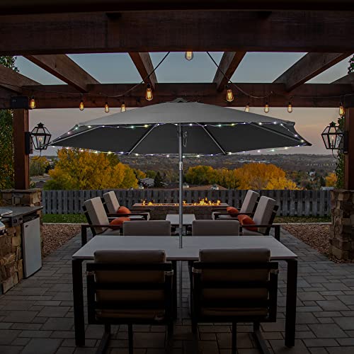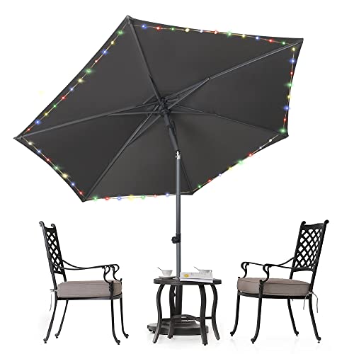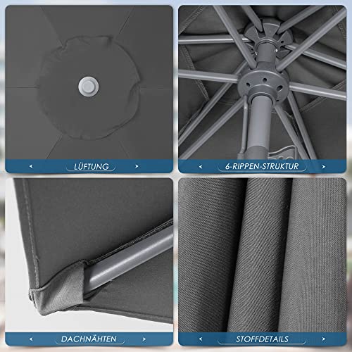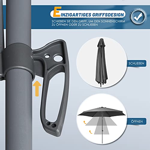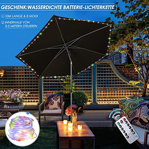 HOMEDEMO Sonnenschirm 270cm Anthrazit mit LED-Lichtern, 2023 Upgrade Balkonschirm, Gartenschirm, Strandschirm, Marktschirm, Terrassenschirm, Tischschirm, Schutz 50+ Knickbar Neigbar, patio umbrella