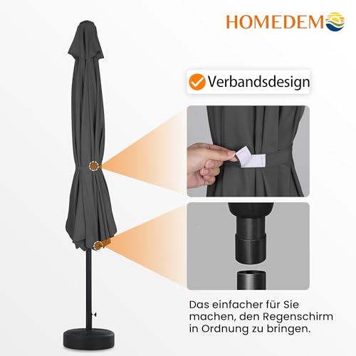 【Vorsichtsmaßnahmen zur Anwendung】Der Sonnenschirm hat eine breite Palette von Anwendungen. Besonders angemessen für Szenen als Gärten, Terrassen, Balkone, Strände, etc. Bei Verwendung qua freistehender Sonnenschirm benötigt er einen Hof-Sonnenschirmfuß, der über 12 Kilogramm wiegt (Sonnenschirmfuß sind nicht in der Verpackung enthalten). Bei Nichtgebrauch schlussfolgern Sie bitte den Sonnenschirm und binden ihn mit einem Riemen, um seinen optimalen Zustand zu erhalten und seine Lebensdauer zu verlängern