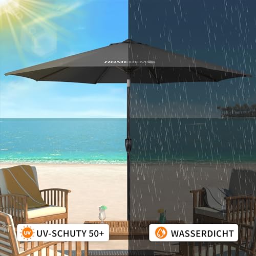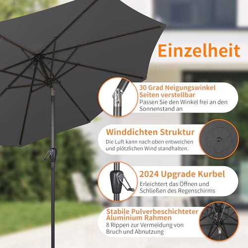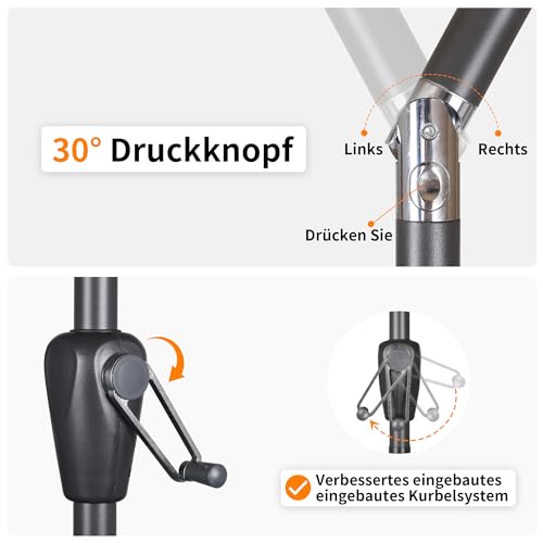 【Neigungswinkel Seiten verstellbar】Sonnenschirm balkon besteht jeglicher 8-Schirmrippen und Metallstangen, die die Haltbarkeit und Robustheit dieses Hofschirms erhöhen. Der Sonnenschirm ist mit einem Kippschacht ausgestattet, der in einem Winkel von 30° kippen kann. Sie können die Sonnenschutzposition des Gartenschirms nach Ihren Bedürfnissen drauf setzen, um überschüssiges Sonnenlicht zu blockieren