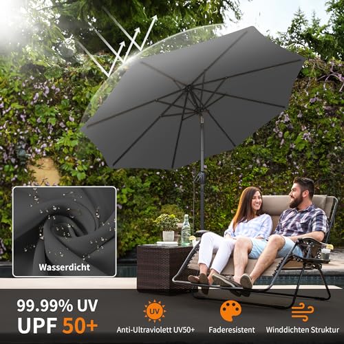 【2025 Upgrade Einfaches Kurbelsystem】Das robuste Gerüst und die innovative Kurbeltechnologie ermöglichen eine mühelose Montage für den täglichen Gebrauch. Drücken, heben und kurbeln Sie den Sonnenschirm einfach in die gewünschte Position. Das Kurbelsystem hat 50000-Ermüdungstests bestanden, wodurch es einfach ist, Sonnenschirme im Freien zu öffnen und zu schlussfolgern.Machen Sie Ihren Gebrauch bequemer und reibungsloser