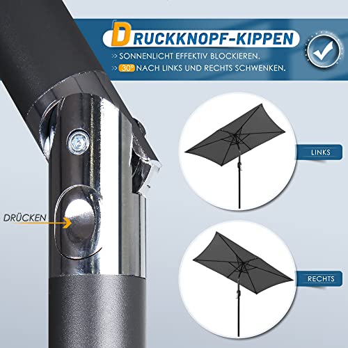 HOMEDEMO Sonnenschirm Rechteckig 210x140cm, Balkonschirm Gartenschirm Marktschirm, Terrassenschirm, Tischschirm, Strandschirm, Anthrazit Schutz 50+ Knickbar Neigbar Sonnenschutzschirm