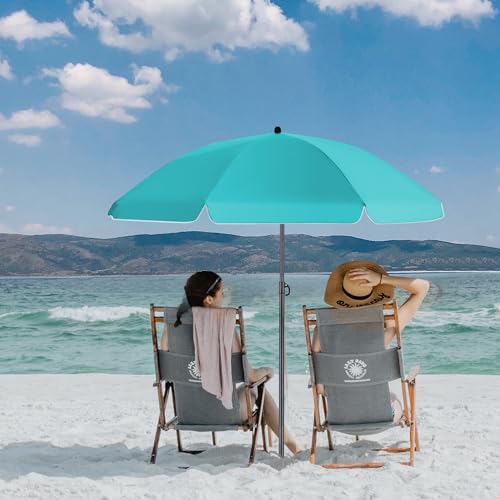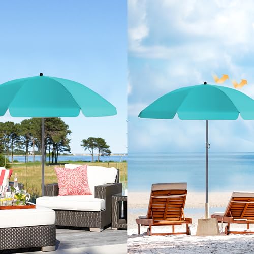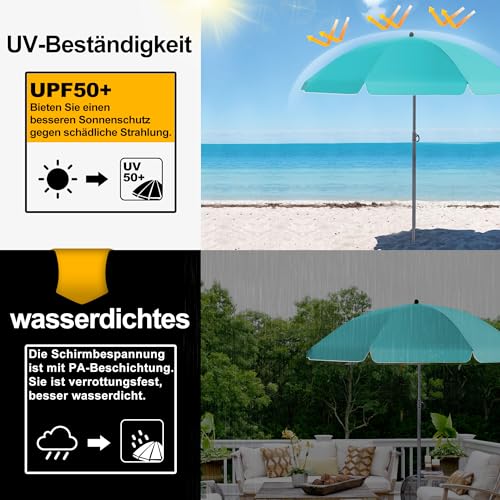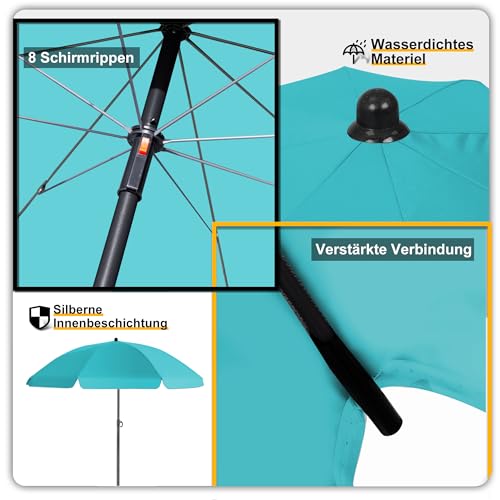 HOMEDEMO Sonnenschirm Strandschirm, Ø 140 cm Gartenschirm Marktschirm, Terrassenschirm mit Bodenhülse & Drehstange & Schutzhülle, Türkis rund Sonnenschutzschirm UV50+ Schutz