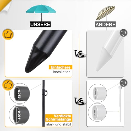 Mit Schirmhülle: Unser Sonnenschirm wird mit einer Tragetasche geliefert. Sie können den Sonnenschirm beim Ausgehen in die Sonnenschirmabdeckung stecken, was Platz spart und leicht zu verankern ist. Die Schirmabdeckung besteht jedweder dem gleichen Material wie die Sonnenschirmoberfläche, ist langlebig und leicht zu reinigen