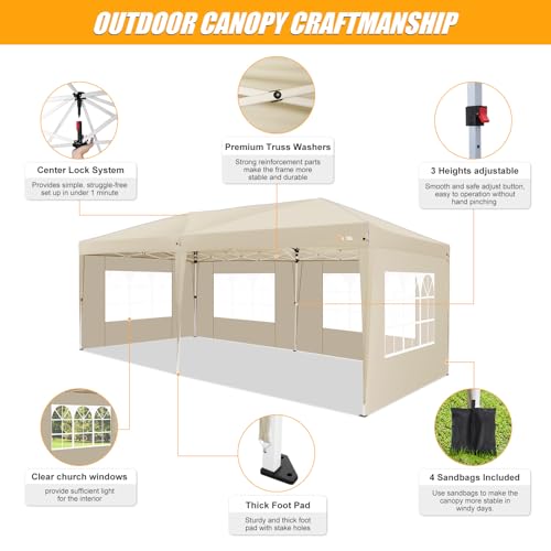 💦【Wasserdichtes Vordach und abnehmbare Seitenwände】Faltpavillon besteht aus 210D wasserdichtem Oxford-Gewebe. Sie können es also das ganze Jahr über verwenden. 6 abnehmbare Seitenwände sind mit einem durchgehenden Klettband am Rahmen befestigt und schützen so Ihre Privatsphäre. Sie können Seitenwände je nach Bedarf zusetzen oder ermäßigen.