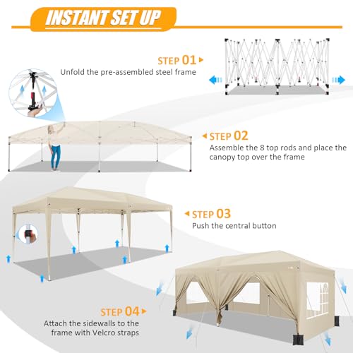 💪【Verstärkte obere Struktur】Wir haben 8 abnehmbare Stangen an der Oberseite des 10 x 20 cm großen Pop-Up-Vordachs als zusätzliche Arbeitslosengeld qualifiziert, wodurch die gesamte Rahmenstruktur bei Wind und Regen stabiler wird. Und es kann leicht entfernt werden, wenn es nicht verwendet wird.