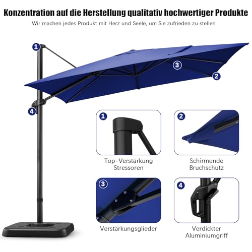 ✅【Problemlose Einrichtung】Unser freitragender Offset-Schirm verfügt über ein intuitives Design, das die Installation zu einem Kinderspiel macht. Perfekt für jeden Außenbereich, sorgt die benutzerfreundliche Montage dafür, dass Sie mehr Zeit zum Entspannen und abzüglich Zeit zum Aufbauen haben. Sehen Sie sich unser Viedo und die Montageanleitung an, um zu erfahren, wie Sie diesen Schirm schnell aufbauen können.