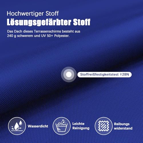 ✅【Hochwertiger Premium-Stoff & Einjährige Garantie】 Unser Hotime-Terrassenschirm verfügt über ein hochdichtes 240g-Polyestergewebe, das die geringe Dichte der meisten Konkurrenten übertrifft. Der Stoff bietet eine hervorragende Beständigkeit gegen Ausbleichen, Wasser und UV-Strahlen und gewährleistet einen lang anhaltenden Abschirmung. Haben Sie Fragen zu unserem Sonnenschirm? Kontaktieren Sie uns jederzeit. Entdecken Sie die Qualität und Zuverlässigkeit, die uns auszeichnet!