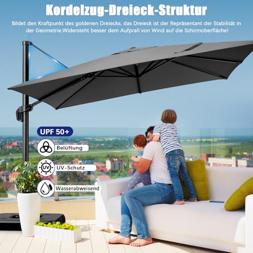 ✅【Problemlose Einrichtung】Unser freitragender Offset-Schirm verfügt über ein intuitives Design, das die Installation zu einem Kinderspiel macht. Perfekt für jeden Außenbereich, sorgt die benutzerfreundliche Montage dafür, dass Sie mehr Zeit zum Entspannen und minus Zeit zum Aufbauen haben. Sehen Sie sich unser Viedo und die Montageanleitung an, um zu erfahren, wie Sie diesen Schirm schnell aufbauen können.
