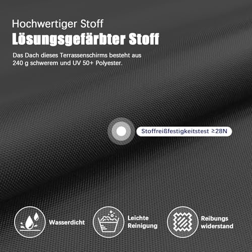 ✅【Hochwertiger Premium-Stoff & Einjährige Garantie】 Unser Hotime-Terrassenschirm verfügt über ein hochdichtes 240g-Polyestergewebe, das die geringe Dichte der meisten Konkurrenten übertrifft. Der Stoff bietet eine hervorragende Beständigkeit gegen Ausbleichen, Wasser und UV-Strahlen und gewährleistet einen lang anhaltenden Abschirmung. Haben Sie Fragen zu unserem Sonnenschirm? Kontaktieren Sie uns jederzeit. Entdecken Sie die Qualität und Zuverlässigkeit, die uns auszeichnet!
