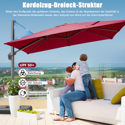 ✅【Problemlose Einrichtung】Unser freitragender Offset-Schirm verfügt über ein intuitives Design, das die Installation zu einem Kinderspiel macht. Perfekt für jeden Außenbereich, sorgt die benutzerfreundliche Montage dafür, dass Sie mehr Zeit zum Entspannen und abzgl. Zeit zum Aufbauen haben. Sehen Sie sich unser Viedo und die Montageanleitung an, um zu erfahren, wie Sie diesen Schirm schnell aufbauen können.