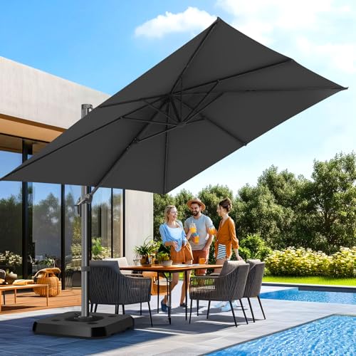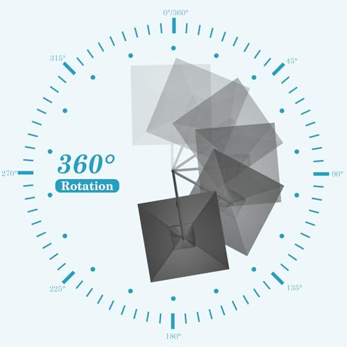 HOTIME Großer freischwingender Terrassenschirm, 3 x 3 m, erweiterbar und intensiviert, mit 360° Drehung und 5 Winkeln, Aluminium, versetzter Poolschirm, quadratisch, Outdoor-Regenschirm für Terrasse,