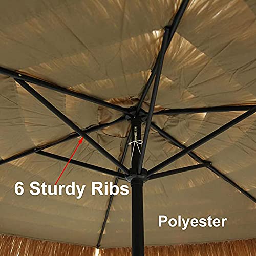 Der obere Bruchstück des Gartenschirms ist mit Polyestergras bedeckt. Das lichtechte Schirmmaterial ist ideal, um der Sonne der Westküste standzuhalten. Das robuste Rippen- und Stangensystem ist ideal für starke Ostküstenwinde am Nachmittag. Dieser Schirm ist eine großartige Abstimmung für Ihren Garten, Sie können damit auch Mottopartys aufziehen und den Tag am Strand oder im Park verbringen.