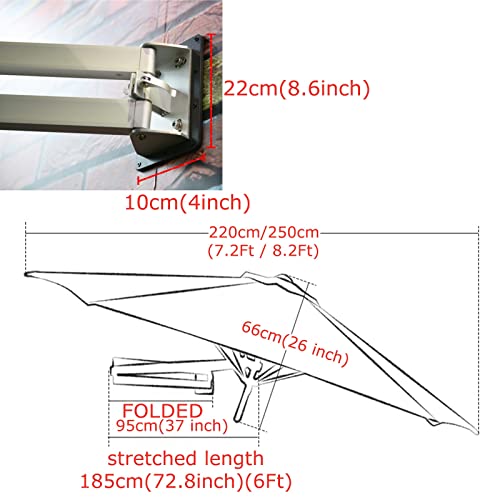 Der Sonnenschirm ist an der Wand montiert und eignet sich für den Außenbereich, Garten, Innenhof, Balkon, Terrasse, Ausstellungshalle, Restaurant, Café und andere gewerbliche Orte