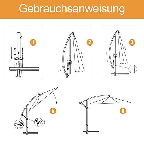 💯【Material】Die Sonnenschirmhülle besteht sämtliche Polyester. Das Schirmtuch besteht sämtliche 160 g/m² Polyester Polyester schützt Sie teilweise vor UV-Strahlung trübselig dem Sonnenschirm, 6 Dachstreben sämtliche pulverbeschichtetem Stahl umsorgen Alterungsbeständigkeit.