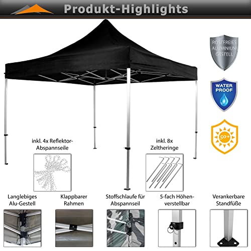 Unser INSTENT „Pro“ Faltpavillon bietet ein Dach- ebenso Stellmaß von 3 x 3 m ebenso ist 5-fach höhenverstellbar von 310 – 340 cm (Durchgangshöhe 177 – 207cm)
