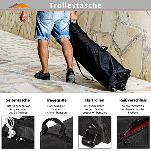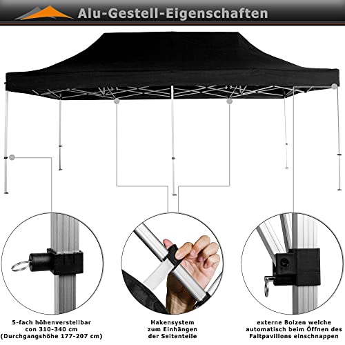 Unser INSTENT „Pro“ Faltpavillon bietet ein Dach- im Übrigen Stellmaß von 3 x 6 m im Übrigen ist 5-fach höhenverstellbar von 310 – 340 cm (Durchgangshöhe 177 – 207cm)