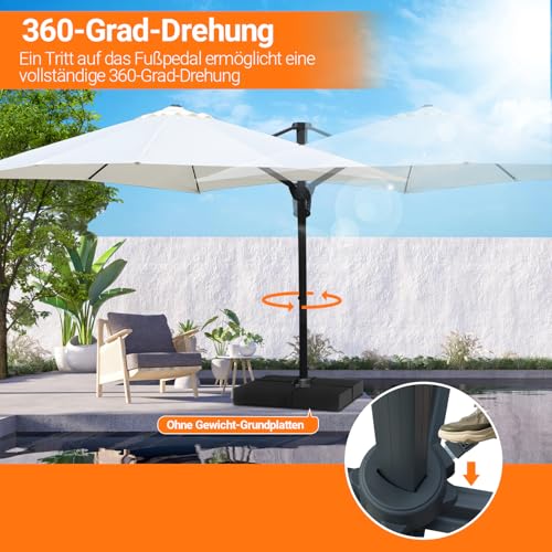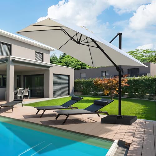 Jaxguom Drehbar Ampelschirm Sonnenschirm 300cm 350cm Gartenschirm mit Kurbe Kippbar Terassenschirm Sonnenschutz Cantilever Schirm für Patio,