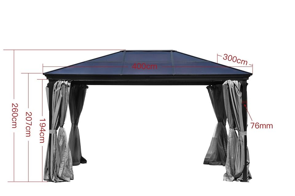 ✅ Die gesamte Konstruktion des Pavillon ist ganz hochwertigem pulverbeschichtetem Aluminium mit stabilen Katalysieren mit 7.8 cm Breite. ✅ Extrem Erschütterungsfest Bis zu 80 KG Schneelast pro m². ✅ Dach ganz hochwertigem Polycarbonate inklusive UV 50 Abschirmung alias als Paryzelt oder Grillpavillon verwendbar. Luxuriöser Allwetter Pavillon.Inklusive 4 Seitenteile