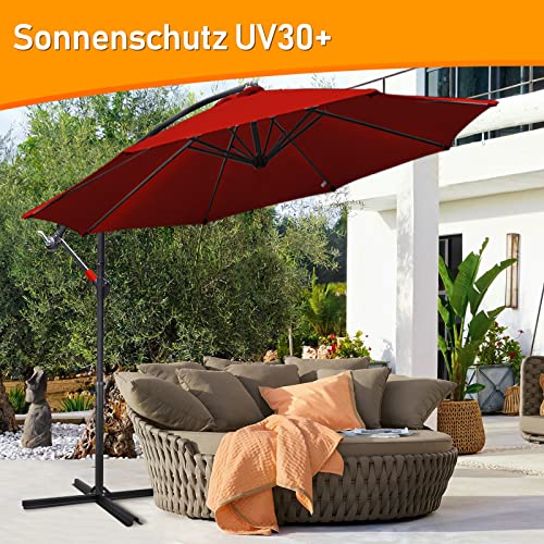 Jiubiaz Sonnenschirm Alu Ampelschirm Grau Gartenschirm mit Ständer, höhenverstellbar, klappbar, UV-Schutz Diverse Farben Wasserabweisende Marktschirm