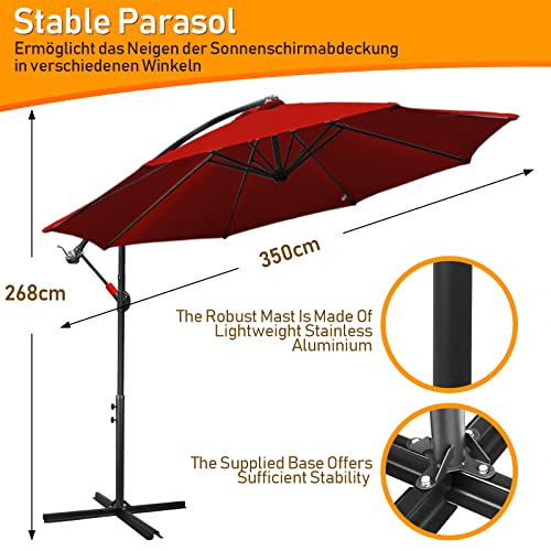 【Platzsparend】Der leichtgängige Kurbelmechanismus sorgt für ein müheloses Öffnen und Verstellen des Sonnenschirms. Der Ampelschirm allesamt Leichtmetall besitzt ein Halteband mit Klettverschluss zum kompakten Verschnüren.