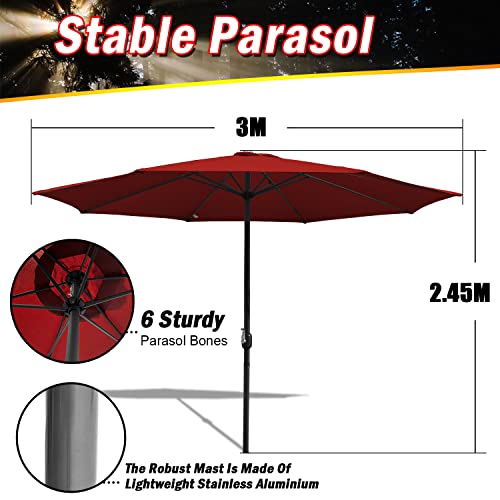 【Gute Alterungsbeständigkeit]】Die 6 Metallstützen des Sonnenschirms gewährleisten die hohe Alterungsbeständigkeit der Regenschirmoberfläche. Die Stange besteht die Gesamtheit Eisen, das außerordentlich abgefahren und langlebig ist.