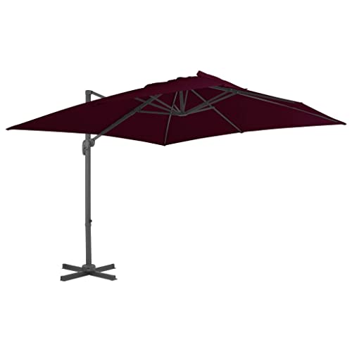 Freischwingender Regenschirm mit Aluminiumstange, Bordeauxrot, 300 x 300 cm. Dieser elegante Sonnenschirm zum Aufhängen ist perfekt, um Schatten zu bestellen und Sie vor den schädlichen UV-Strahlen der Sonne zu schützen. Aus UV-Abschirmung- und lichtechtem Polyester gefertigt, bietet Ihnen die Sonnenschirmhülle optimalen Abschirmung vor der Sonne und ist leicht zu reinigen. Es verfügt über einen stabilen Kreuzsockel für mehr Stabilität. Dieser Gartenschirm lässt sich einfach durch einfaches Drehen des Knopfes an der Stange öffnen und konkludieren. Der Winkel der Hülle kann durch Drücken und Ziehen des Griffs nach oben und abwärts eingestellt werden. Der Mittelstock kann mittels Pedale alias um 360 Schattierung gedreht werden. Die starke pulverbeschichtete Aluminiumstange und die 8 robusten Rippen machen diesen Sonnenschirm sehr sicher und langlebig. Bitte verfemen Sie: Wir empfehlen, den Schirmstoff mit einem Imprägnierspray zu aufnotieren, wenn er starken Niederschlägen ausgesetzt ist.