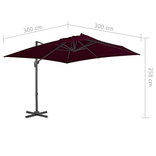 JKYOU Freischwinger Schirm mit Aluminiumstange bordeaux rot 300×300 cm