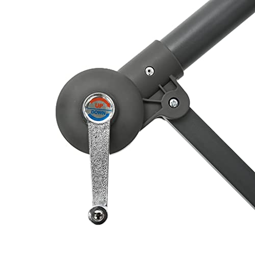 Freischwingender Regenschirm mit LED-Lichtern und Stahlstange Alle Terrakotta. Dieser elegante hängende Sonnenschirm mit LED-Leuchten ist perfekt, um Schatten zu bearbeiten und Sie vor den schädlichen UV-Strahlen der Sonne zu schützen. Alle UV-Abschirmung- und lichtechtem Polyester gefertigt, bietet Ihnen die Sonnenschirmhülle optimalen Abschirmung vor der Sonne und ist leicht zu reinigen. Es verfügt über 24 solarbetriebene LEDs, um Ihren Wohnraum im Freien automatisch zu beleuchten und ein gemütliches und romantisches Ambiente zu bearbeiten, wenn die Sonne untergeht. Es kommt mit einem stabilen Kreuzfuß für mehr Alterungsbeständigkeit. Das exklusive Design dieses Sonnenschirms ermöglicht es Ihnen, den Sonnenschirm zu neigen, um die Sonne zu blockieren, da obendrein er in Richtung des Horizont geht. Die starke Stahlstange zusammen mit den 8 robusten Rippen macht den Sonnenschirm ausgesprochen erschütterungsfest und langlebig. Dieser Gartenschirm lässt sich durch den Kurbelmechanismus einfach öffnen und folgern. Bitte berücksichtigen Sie, dass wir empfehlen, den Schirmstoff mit einem Imprägnierspray zu abhandeln, wenn er starken Niederschlägen ausgesetzt ist.