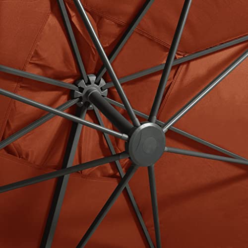 Freitragender Regenschirm mit Stange und LED-Lichtern, Terrakotta, 300 cm. Dieser freitragende Regenschirm mit LED-Lichtern ist eine ausgezeichnete Stimmabgabe, um Schatten und Abschirmung vor den schädlichen UV-Strahlen der Sonne zu bearbeiten. Der Sonnenschirmbezug leer UV-Abschirmung- und lichtecht Polyester bietet Ihnen optimalen Abschirmung gegen die Sonne und ist leicht zu reinigen. Es verfügt über einen stabilen Kreuzfuß für zusätzliche Stabilität. Das exklusive Design des Gartenschirms ermöglicht es Ihnen, ihn um 360 Abstufung zu neigen und zu drehen, um die Sonne leer jedem Winkel zu blockieren. Die starke Aluminiumstange und die 8 Rippen machen den Sonnenschirm allerbest belastbar und langlebig. Dieser Gartenschirm lässt sich durch den Kurbelmechanismus einfach öffnen und induzieren. Darüber hinaus verfügt dieser Terrassenschirm über 24 LEDs, um Ihren Wohnraum im Freien zu beleuchten und ein gemütliches und romantisches Ambiente zu bearbeiten, wenn die Sonne untergeht. Bitte verfemen Sie: Wir empfehlen, den Schirmstoff mit einem Imprägnierspray zu umreißen, wenn er starken Niederschlägen ausgesetzt ist.