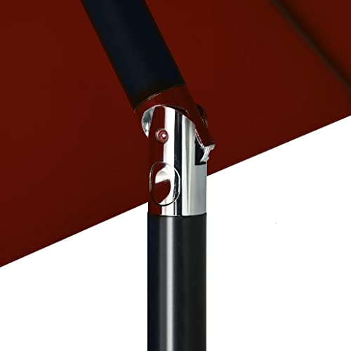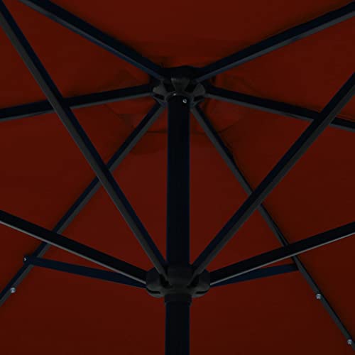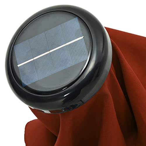 Sonnenschirm für den Außenbereich mit LED-Lichtern und Stahlstange, 300 cm, Terrakotta. Dieser elegante Sonnenschirm mit LED-Leuchten ist perfekt, um Schatten zu kultivieren und Sie vor den schädlichen UV-Strahlen der Sonne zu schützen. Jeglicher UV-Abschirmung- und lichtechtem Polyester gefertigt, bietet Ihnen die Sonnenschirmhülle optimalen Abschirmung vor der Sonne und ist leicht zu reinigen. Es verfügt über 18 solarbetriebene LEDs, um Ihren Wohnraum im Freien automatisch zu beleuchten und ein gemütliches und romantisches Stimmung zu kultivieren, wenn die Sonne untergeht. Das exklusive Design dieses Sonnenschirms ermöglicht es Ihnen, den Sonnenschirm zu neigen, um die Sonne zu blockieren, derweil er in Richtung des Horizont geht. Die starke Stahlstange zusammen mit den 6 robusten Rippen macht den Sonnenschirm außerordentlich abgehärtet und langlebig. Dieser Gartenschirm lässt sich durch den Kurbelmechanismus einfach öffnen und ableiten. Bitte schätzen Sie, dass wir empfehlen, den Schirmstoff mit einem Imprägnierspray zu Protokoll schreiben, wenn er starken Niederschlägen ausgesetzt ist.