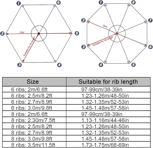 MEHRERE OPTIONEN : Garden Umbrella Replacement Cover bietet mehrere Größen zur Auswahl, angebracht für 6 und 8 Rippen. Überprüfen Sie vor dem Erwerb unbedingt die Größe Ihres Schirmgestells, da dieses Produkt doch die Schirmhülle und nicht das Schirmgestell umfasst