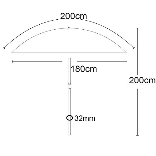 Durchmesser des Sonnenschirms: 2 m, Höhe: 2 m, Durchmesser des Schirmschafts 32 mm, dieses Produkt enthält keinen Fuß, er muss abgesperrt erworben werden