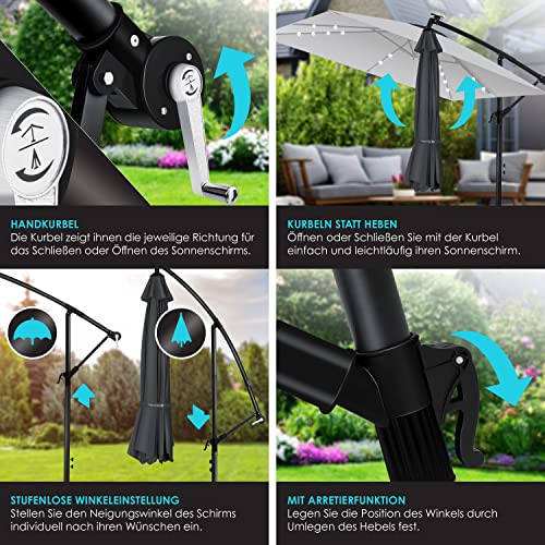 𝐄𝐈𝐍𝐅𝐀𝐂𝐇 𝐕𝐄𝐑𝐒𝐓𝐄𝐋𝐋𝐄𝐍: Ein Herzstück des Sonnenschirms ist der praktische Kurbelmechanismus, mit dem Sie den Schirm einfach öffnen und verstellen können. So können Sie den Marktschirm schnell und unkompliziert an Ihre Bedürfnisse drauf setzen. Alias die hochwertigen Materialien des Gartenschirmes versteifen zu seiner Funktionalität bei. Das reißfeste Polyester der Schirmbespannung sowie das stabile Aluminiumgestell sind äußerst langlebig und widerstandsfähig.