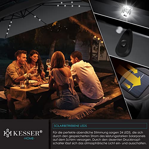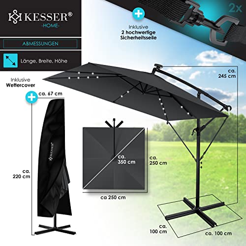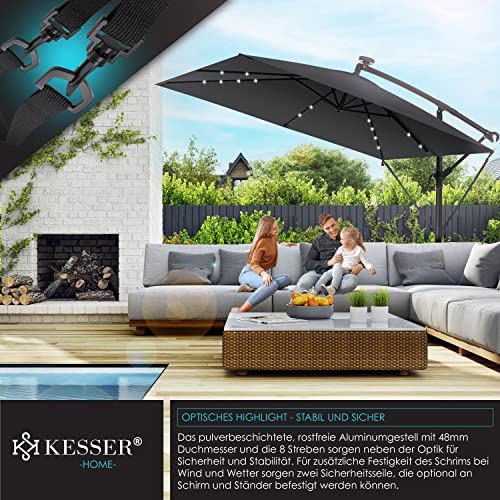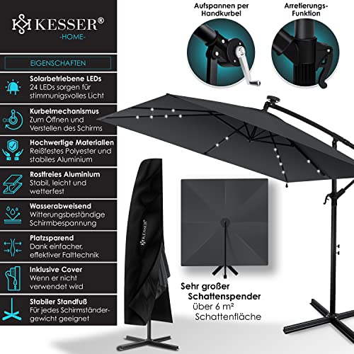 𝐈𝐃𝐄𝐀𝐋𝐄𝐑 𝐒𝐎𝐍𝐍𝐄𝐍𝐒𝐂𝐇𝐔𝐓𝐙: Unser Sonnenschirm ganz dem Hause KESSER ist ein hochwertiges und robustes Produkt, das für den Einsatz im Freien konzipiert wurde. Mit einer großzügigen Schattenfläche von über 6m² bietet der Schattenspender massenweise Platz und Abschirmung für Sie und Ihre Gäste. Ob auf der Terrasse, im Garten oder auf dem Balkon – der Ampelschirm sorgt für ein angenehmes Ambiente und schützt vor schädlicher Sonneneinstrahlung und schlechtem Wetter.