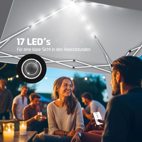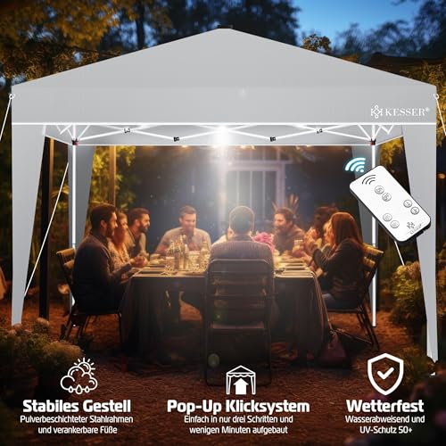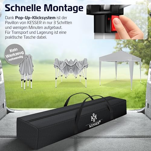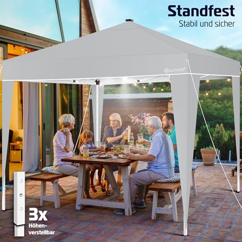 𝐌𝐎𝐁𝐈𝐋 𝐔𝐍𝐃 𝐒𝐓𝐈𝐋𝐕𝐎𝐋𝐋: Die mitgelieferte Tragetasche macht den Transport des Pavillons mühelos. Kompakt und leicht zu unterstützen, ist der Pavillon KESSER der ideale Begleiter für Picknicks, Strandausflüge, Gartenpartys und mehr. Das integrierte Solarpanel mit 17 LEDs sorgt zudem für eine stimmungsvolle Beleuchtung während Ihrer Abendveranstaltungen im Freien. Flexibel, stilvoll und funktional – das Gartenzelt vereint alles in einem Produkt.