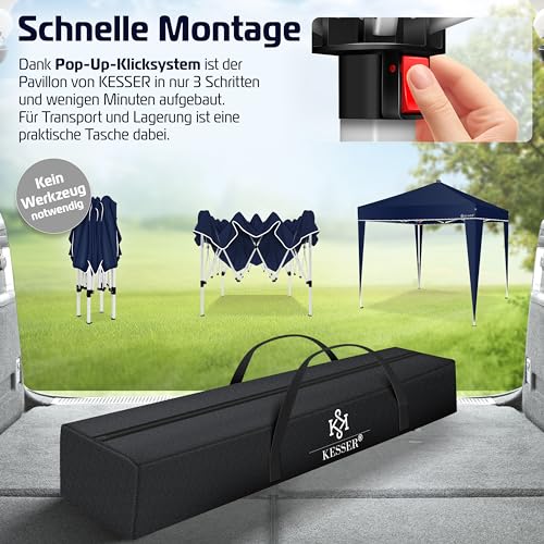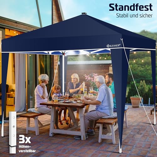 KESSER® Pavillon Faltpavillon 3x3m mit LED Beleuchtung | Pop-Up Gartenpavillon Höhenverstellbar Stabil Wasserdicht Winterfest | Partyzelt Festzelt UV-Schutz 50+ inkl. Fernbedienung & Tasche Navy Blau