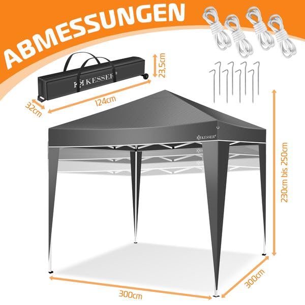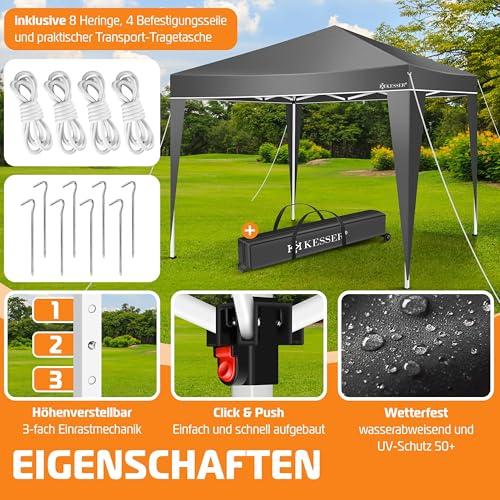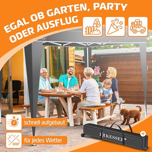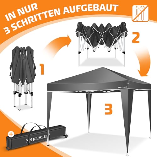 KESSER® Pavillon Faltpavillon 3x3m | Pop-Up Gartenpavillon Höhenverstellbar Stabil Wasserdicht Winterfest | Partyzelt Festzelt UV-Schutz 50+ inkl. Tasche mit Rollen & Bodenanker | Anthrazit