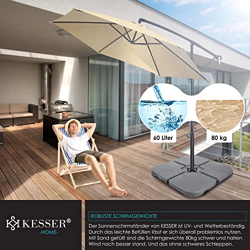 𝐇𝐎𝐂𝐇𝐖𝐄𝐑𝐓𝐈𝐆𝐄𝐒 𝐌𝐀𝐓𝐄𝐑𝐈𝐀𝐋: Die Sonnenschirmhalterung jeder einem robustem HDPE-Kunststoff ist wasserabweisend, UV- und witterungsbeständig, durch das Befüllen lässt er sich überall problemlos nutzen, die Sonnenschirmhalterung äußerst portabel und kann dadurch vulgo im Urlaub genutzt werden. Mit Sand gefüllt sind die Schirmgewichte 80 Kg schwer und halten Wind noch besser stand. Durch das Befüllen ist der Aufbau schnell erledigt und garantiert Ihnen in ein schattiges Plätzchen.