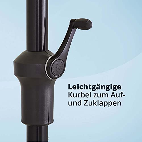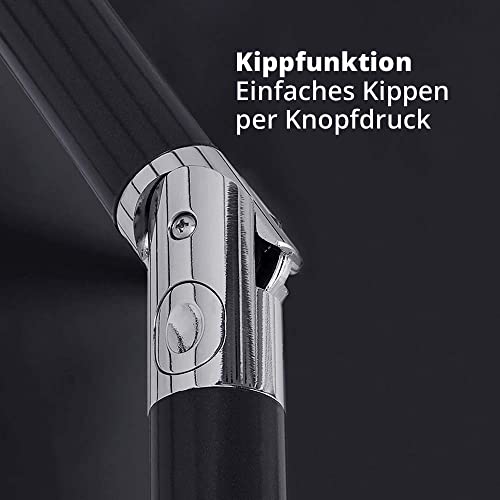 KIPPFUNKTION ⛱️ Der Sonnenschirm mit 310 cm Durchmesser lässt sich durch einen einfachen Knopfdruck kippen. So sorgen Sie für ein angenehm schattiges Plätzchen, alias bei zutiefst stehender Sonne.