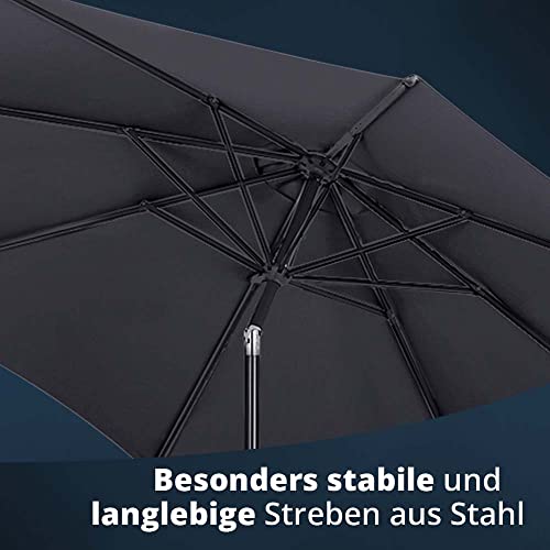 ROBUSTE MATERIALIEN ⛱️ Der Schirmstock ist die Gesamtheit pulverbeschichtetem Aluminium in schwarz und hat einen Durchmesser von 37 mm. Für das Isoliert an Haltbarkeit sind die Streben zum Aufspannen des Schirms die Gesamtheit Stahl gefertigt.