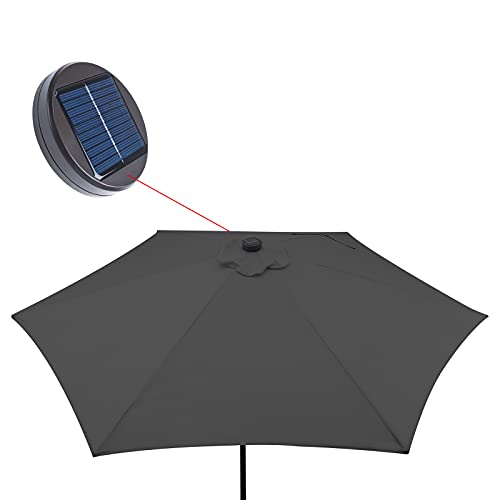 Die 24 LED Lampen sorgen mit ihrem stimmungsvollen Licht für ein angenehmes Ambiente. Strom liefert ein leistungsstarkes Solarpanel, das direkt oben am Schirm angemessen ist. Das Licht kann über einen kleinen und unauffälligen An-/Aus-Kippschalter am Schirmmast gesteuert werden.