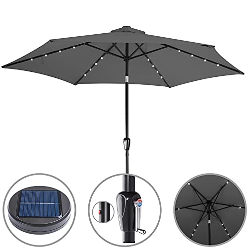 Kingsleeve Sonnenschirm LED Beleuchtung 270 cm UV Schutz 30+ Groß Rund Solar Knickbar Stabil Marktschirm Gartenschirm Garten Terrasse Balkon Anthrazit