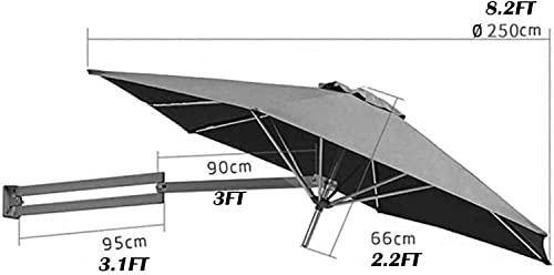 KKMNDE Terrassenschirme für den Außenbereich, Sonnenschirme, Wandbalkon, Terrasse, Gartenschirm, an der Wand montierter, freitragender, neigbarer Sonnenschirm mit Win