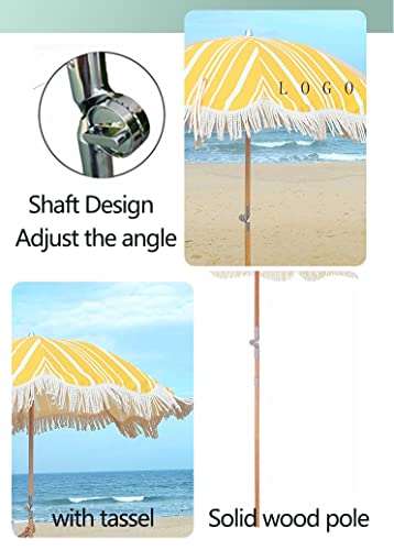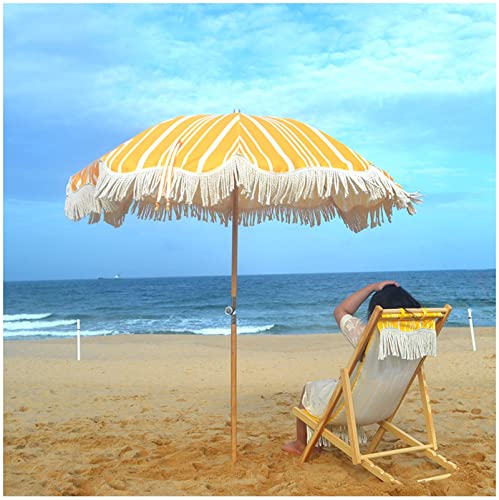 Gartenschirm erhöht den Komfort im Garten, schafft einen mäßig schattigen Weltraum, blockiert UV-Strahlen und ist somit ein nützlicher Gegenstand für Outdoor-Szenen wie Grillabende und Strände Die Holzstange enthält einen Erdbohrer, der sintemalen hilft Halten Sie den Regenschirm im Sand 8 Rippen unterstützen ein robustes Polyesterdach Der Kippmechanismus ermöglicht eine einfache Derivat der Bewegung an die Sonne Mit Quaste , sehr stilvoll im Garten Tragbare Tasche, leicht zu transportieren ins Freie, zum Camping, Picknick usw. Schirmstoffmaterial, Polyester Holzstange