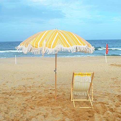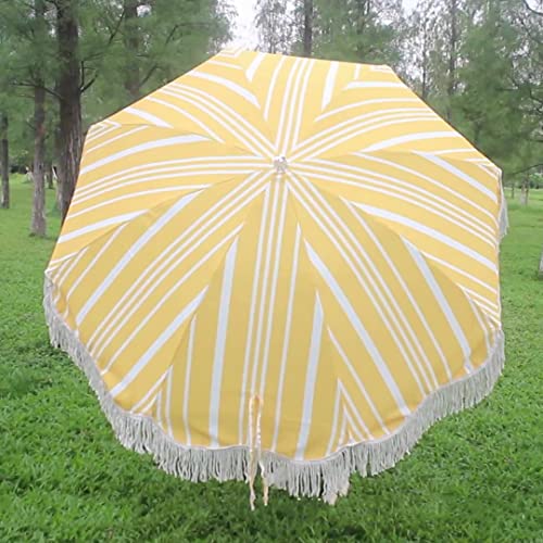 Garten-Sonnenschirm für den Außenbereich mit Fransen, leuchtend gelben und weißen Streifen, entworfen, um Ihren Außenbereich zu bearbeiten und als Dekoration hinzuzufügen, sehr auffällig