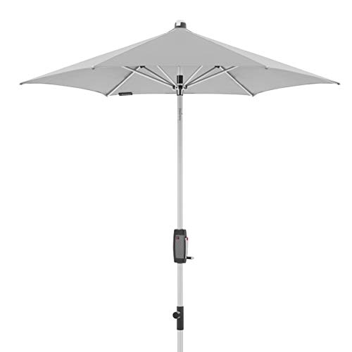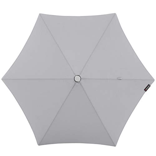 Der runde Outdoor Sonnenschirm in modernem Design bietet Ihnen perfekten Sonnenschutz, ob auf dem Balkon oder der Terrasse. Durch die komfortable Bedienung mit Kurbel lässt sich der Balkonschirm leicht öffnen und folgern. Zudem können Sie dank der leicht zu bedienenden Knickvorrichtung und der Höhenverstellbarkeit den Kurbelsonnenschirm dem Stand der Sonne ideal auf dieselbe Ebene stellen. Das Kurbelgehäuse im Carbon-Look verleiht dem stabilen Terrassenschirm mit silbernem Aluminium-Gestell eine moderne und zeitlose Adresse. Der regenabweisende Bezug ist aus spinndüsen gefärbten Stoffen gefertigt und gewährt somit eine gute Lichtechtheit von 6 und einen Sonnenschutzfaktor von 80+ – für höchste Ansprüche. Sie können den hochwertig verarbeiteten Bezug leicht abklingen und per Handwäsche reinigen.