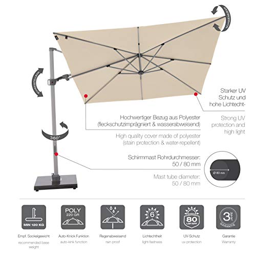 Sie können den quadratischen Ampelschirm infolge den Schiebegriff und die leichtgängige Kurbel allesamt einfach aufspannen