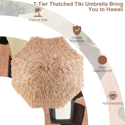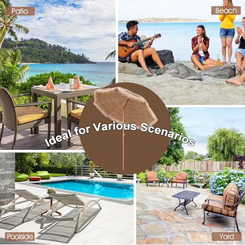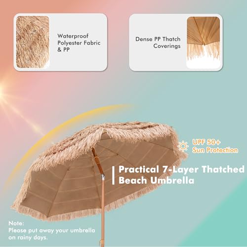 KOMFOTTEU φ2,2M Sonnenschirm Hawaii, Strandschirm 30° knickbar, Balkonschirm Strohschirm mit Sonnenschutz & 8 Rippen, Marktschirm für Garten, Strand