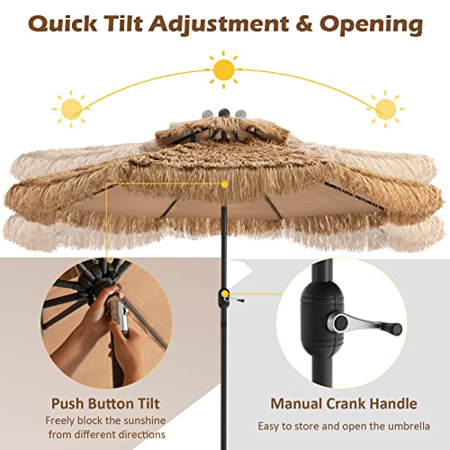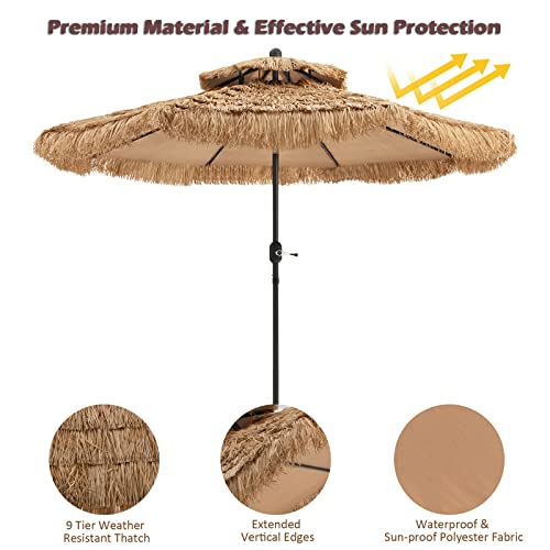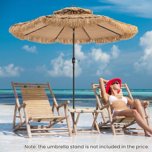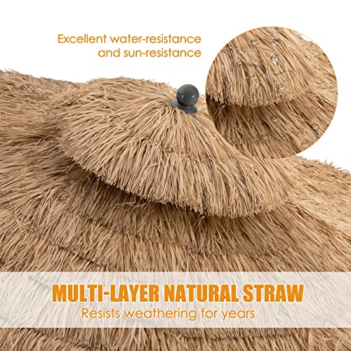 KOMFOTTEU 2,7m Hawaii Sonnenschirm, Strohschirm Sonnenschutz, Bastschirm knickbar, Strandschirm mit Doppeldach, Terrassenschirm Marktschirm für Balkon, Strand